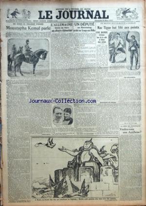 AU PARLEMENT D'ANGORA - MOUSTAPHA KEMAL PARLE - L'ALLEMAGNE TENTE EN VAIN UNE OFFENSIVE DIPLOMATIQUE - MACTH DE BOXE A DUBLIN - MAC TIGUE BAT SIKI AU POINTS - LA CRISE DES DOMESTIQUES - VOULEZ-VOUS UNE ANTILLAISE - DESSIN DE FAIVRE - LE STADE-VELODROME BUFFALO