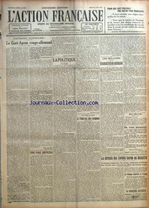POUR QUE SOIT POSSIBLE UNE SOLIDE PAIX FRANCAISE PAR XAVIER DE MAGALLON - CAVEANT CONSULES-LE GUET-APENS ROUGE-ALLEMAND PAR LEON DAUDET UNE PAIX DIFFICILE PAR JACQUES BAINVILLE LA POLITIQUE PAR MAURICE PUJO AU JOUR LE JOUR-LA FRANCE AUX JEUX OLYMPIQUES PAR LUCIEN DUBECH LES MILLIONS DE LA RECONSTITUTION NATIONALE PAR M. P. ECHOS LA DEROUTE DES SOVIETS TOURNE AU DESASTRE-LA POLOGNE REMERCIE LA FRANCE-LA SITUATION MILITAIRE.