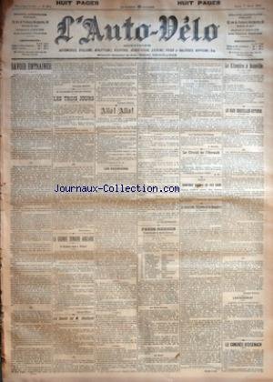 SAVOIR ENTRAINER PAR ALPHONSE BAUGE - AU VELODROME DU PARC DES PRINCES - LES TROIS JOURS PAR GEO LEFEVRE - LA GRANDE SEMAINE ANGLAISE - LE KILOMETRE LANCE A WELBECK PAR GEORGES PRADE - LA SANTE DE M. DEUTSCH PAR ALPHONSE STEINHU - ALLO ! ALLO ! - LES EXCURSIONS PAR H. DESGRANGE - LE TELEPHONISTE - PARIS-RENNES ORGANISEE PAR LA PEDALE RENNAISE PAR F. MERCIER - LE CIRCUIT DE L'HERAULT PAR G.P. - BOXE - CHAMPIONNAT DU MONDE DES POIDS LEGERS - LE CHAUFFEURS, L'EXPRESS ET LES DOUANIERS PAR ALFRED DAMEZ - LE KILOMETRE A DEAUVILLE - LE RAID BRUXELLES-OSTENDE PAR GEORGES TORCHET - L'ENTRAINEMENT PAR BERTIN - LE CONGRES D'EISENACH.
