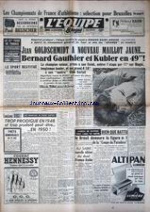 LES CHAMPIONNATS DE FRANCE D'ATHLETISME - SELECTION POUR BRUXELLES - TOUR DE FRANCE - JEAN GOLDSCHMIDT A NOUVEAU MAILLOT JAUNE - BERNARD GAUTHIER ET KUBLER EN 49 - MAGNI - GINO BARTALI - BOBET - MEUNIER - BLOMME - DINARD - ST-BRIEUC - LOUISON BOBET - J. DE RYSWICK - ESCRIME - MAURCIE HERZOG ET LOUIS LACHENAL.