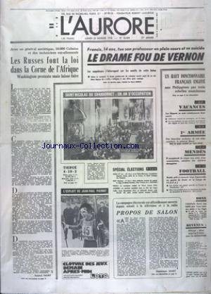 LE DRAME FOU DE VERNON - FRANCIS 14 ANS TUE SON PROFESSEUR ET SE SUICIDE - LES RUSSES FONT LA LOI DANS LA CORNE DE L'AFRIQUE - SPECIAL ELECTIONS - UN HAUT FONCTIONNAIRE FRANCAIS ENLEVE AUX PHILIPPINES - MENDES ACCEPTERAIT DE SIEGER AUX COTES D'UN COMMUNISTE - LES SPORTS - FOOT - BOXE
