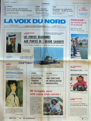 LES FORCES IRAKIENNES AUX PORTES DE L'ARABIE SAOUDITE - ARMENIE - SITUATION TENDUE A EREVAN - SRI LANKA - UNE CENTAINE DE MUSULMANS MASSACRES - 90 BOUGIES POUR LA REINE MERE D'ANGLETERRE - ART - MODIGLIANI - LES SPORTS - FOOT - EQUITATION AVEC NAVET ET BOURDY - FORBACH - 3 ENFANTS ABANDONNES 3 JOURS DANS UN APPARTEMENT