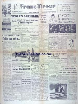 ![FRANC TIREUR [No 129] du 02/12/1944 - TITO EN AUTRICHE - LES FRANCAIS SONT ENTRES A HUNINGUE - LA GALERIE DES MONSTRES - LAFON - BONY ET CIE DEVANT LA COUR - LE PEUPLE FRANCAIS EN LUTTE SALUE STALINGRAD DECLARE LE GENERAL DE GAULLE - REPRISE DU TRAFIC A ANVERS - LES BRETONS ELEVENT DES VEAUX ET DES PORCS POUR LES PARISIENS - BOXE AVEC CHARRON ET TENET gratuit FRANC TIREUR [No 129] du 02/12/1944 - TITO EN AUTRICHE - LES FRANCAIS SONT ENTRES A HUNINGUE - LA GALERIE DES MONSTRES - LAFON - BONY ET CIE DEVANT LA COUR - LE PEUPLE FRANCAIS EN LUTTE SALUE STALINGRAD DECLARE LE GENERAL DE GAULLE - REPRISE DU TRAFIC A ANVERS - LES BRETONS ELEVENT DES VEAUX ET DES PORCS POUR LES PARISIENS - BOXE AVEC CHARRON ET TENET gratuit](https://images-eu.ssl-images-amazon.com/images/I/51nGQUguZML.jpg)