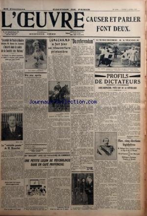 ![OEUVRE (L') [No 6394] du 03/04/1933 - LE PROJET DE PACTE A QUATRE DECLARE M. HENRY DE JOUVENEL S+¡INSCRIT DANS LE CADRE DE LA SOCIETE DES NATIONS - LA VERITABLE PENSEE DE M. MUSSOLINI - DIX ANS APRES PAR D. - LONGCHAMP A FAIT HIER SA REOUVERTURE PRINTANIERE - EN ROULANT AVEC LES VOYAGEURS DE COMMERCE - UNE PETITE LECON DE PSYCHOLOGIE DANS UN CAFE PROVINCIAL PAR AUGUSTE HARDY - DU REFERENDUM - L'ESCRIME A L'ECOLE - PROFILS DE DICTATEURS - LOUIS-NAPOLEON PRESIDENT DE LA REPUBLIQUE PAR GEORGES GIR francais OEUVRE (L') [No 6394] du 03/04/1933 - LE PROJET DE PACTE A QUATRE DECLARE M. HENRY DE JOUVENEL S+¡INSCRIT DANS LE CADRE DE LA SOCIETE DES NATIONS - LA VERITABLE PENSEE DE M. MUSSOLINI - DIX ANS APRES PAR D. - LONGCHAMP A FAIT HIER SA REOUVERTURE PRINTANIERE - EN ROULANT AVEC LES VOYAGEURS DE COMMERCE - UNE PETITE LECON DE PSYCHOLOGIE DANS UN CAFE PROVINCIAL PAR AUGUSTE HARDY - DU REFERENDUM - L'ESCRIME A L'ECOLE - PROFILS DE DICTATEURS - LOUIS-NAPOLEON PRESIDENT DE LA REPUBLIQUE PAR GEORGES GIR francais](https://images-eu.ssl-images-amazon.com/images/I/516frPHEh4L.jpg)