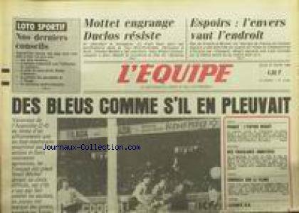 ![EQUIPE (L') [No 12405] du 27/03/1986 - DES BLEUS COMME S'IL EN PLEUVAIT - MOTTET - DUCLOS - GLACE - ESCRIME - RUGBY - DUBROCA - TENNIS - LECONTE. francais EQUIPE (L') [No 12405] du 27/03/1986 - DES BLEUS COMME S'IL EN PLEUVAIT - MOTTET - DUCLOS - GLACE - ESCRIME - RUGBY - DUBROCA - TENNIS - LECONTE. francais](https://images-eu.ssl-images-amazon.com/images/I/41KiMe7ng2L.jpg)